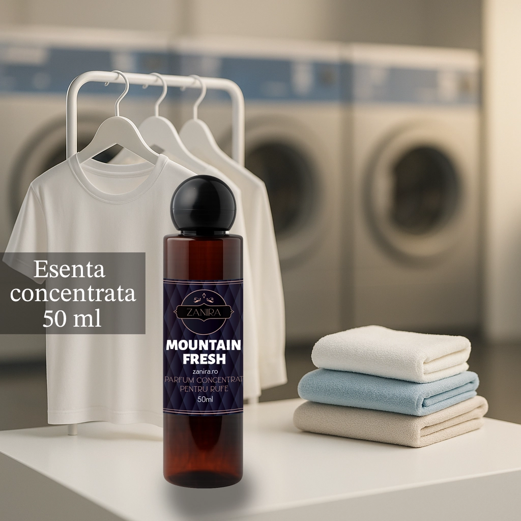Esența concentrată Zanira Mountain Fresh aduce pe textile o aromă fresh-naturală și energizantă, inspirată din aerul curat de munte, păduri răcoroase și briză minerală. Este o creație originală Zanira, perfectă pentru cei care vor ca hainele lor să miroasă curat, proaspăt și natural, ca după o escapadă în natură.